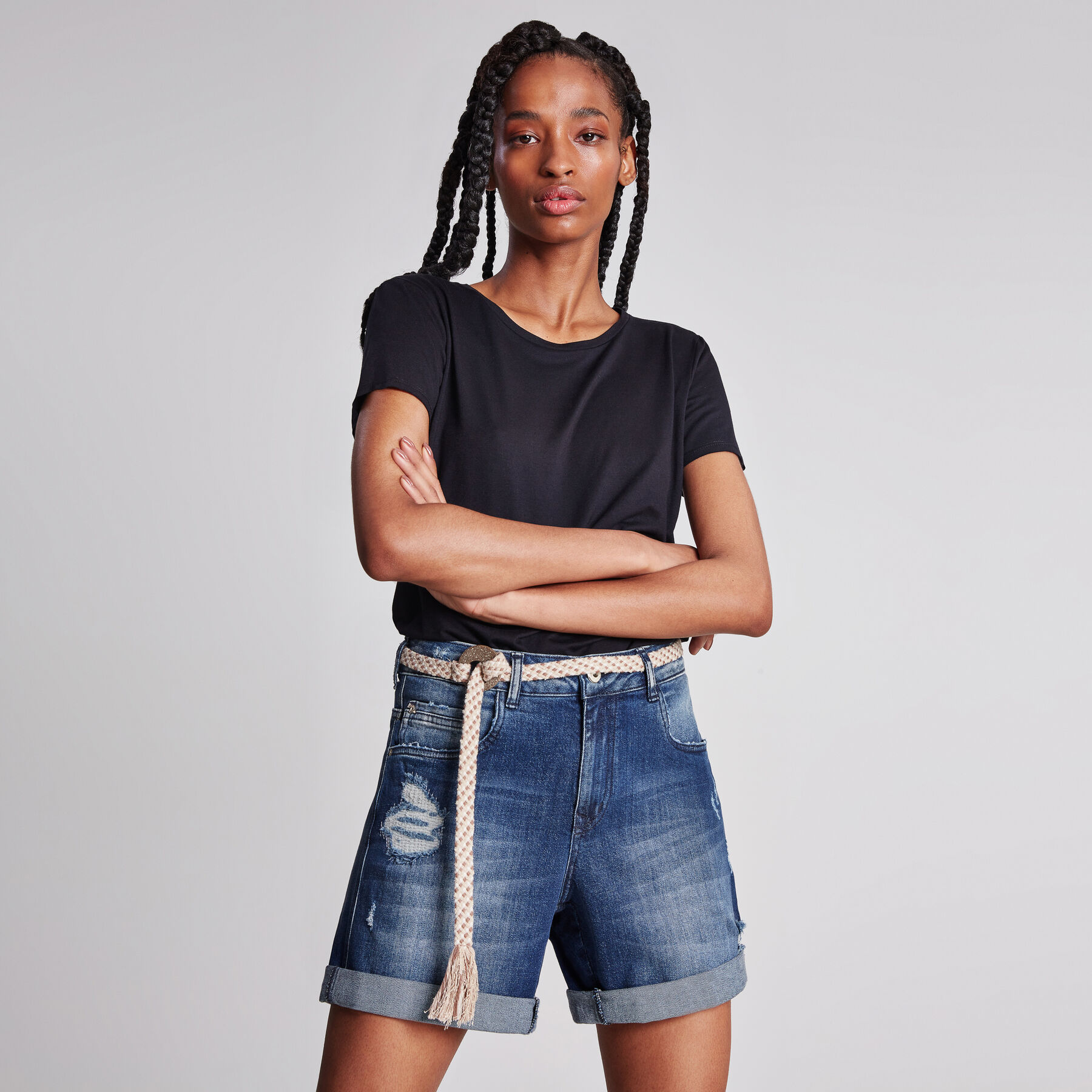 Bermuda Jeans Lezalez Boyfriend Com Cinto